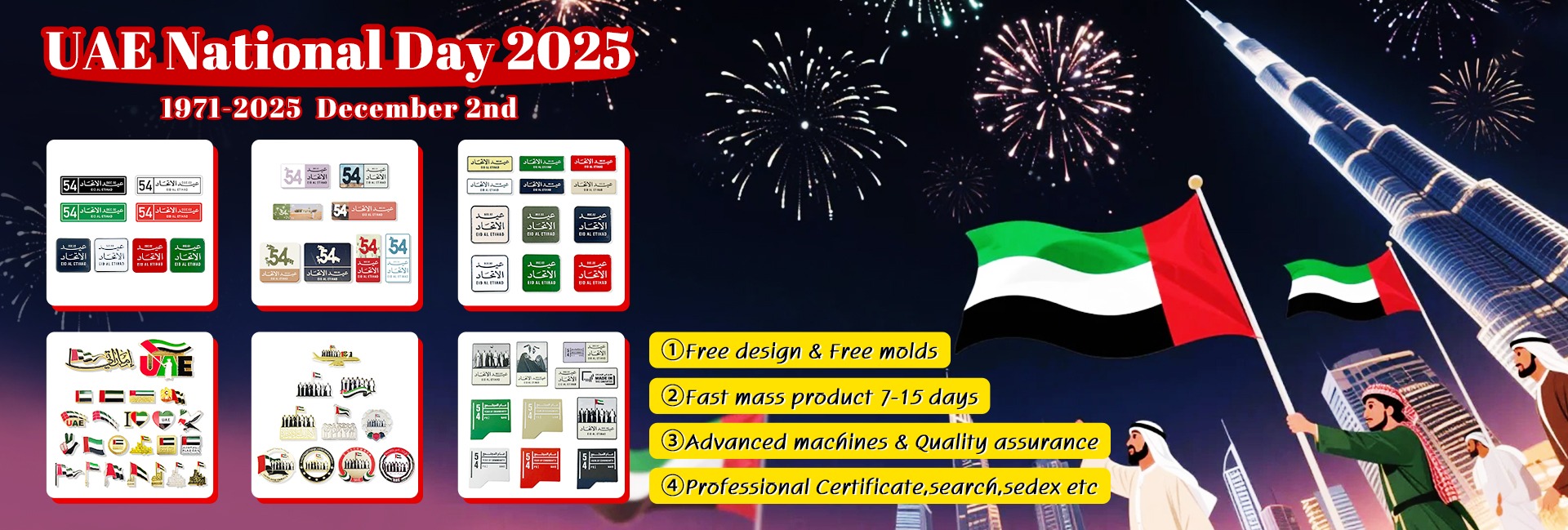 เข็มกลัดติดปกเสื้อรูป54th 2025ยูเออีป้ายแม่เหล็กสติกเกอร์โทรศัพท์เคลือบโลหะของขวัญวันชาติ