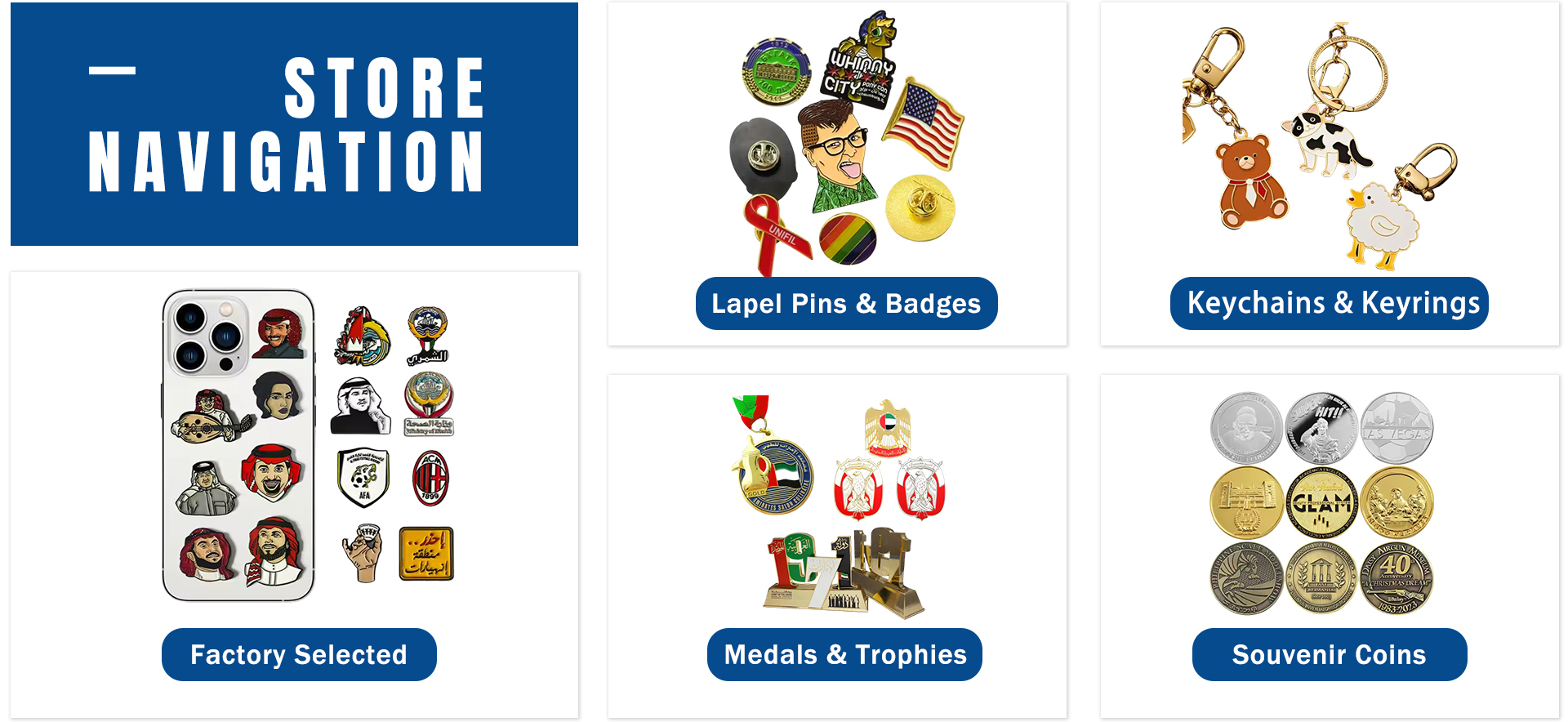 ผลิตภัณฑ์หลัก:เข็มกลัดปกเสื้อ, พวงกุญแจ, เหรียญ, เหรียญ, แผ่นโลหะ