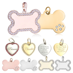 ที่กําหนดเองโลหะทองเคลือบคริสตัลแววแท็ก ID สัตว์เลี้ยงกระดูกรูปหัวใจแท็กสุนัขสําหรับโลโก้เลเซอร์
